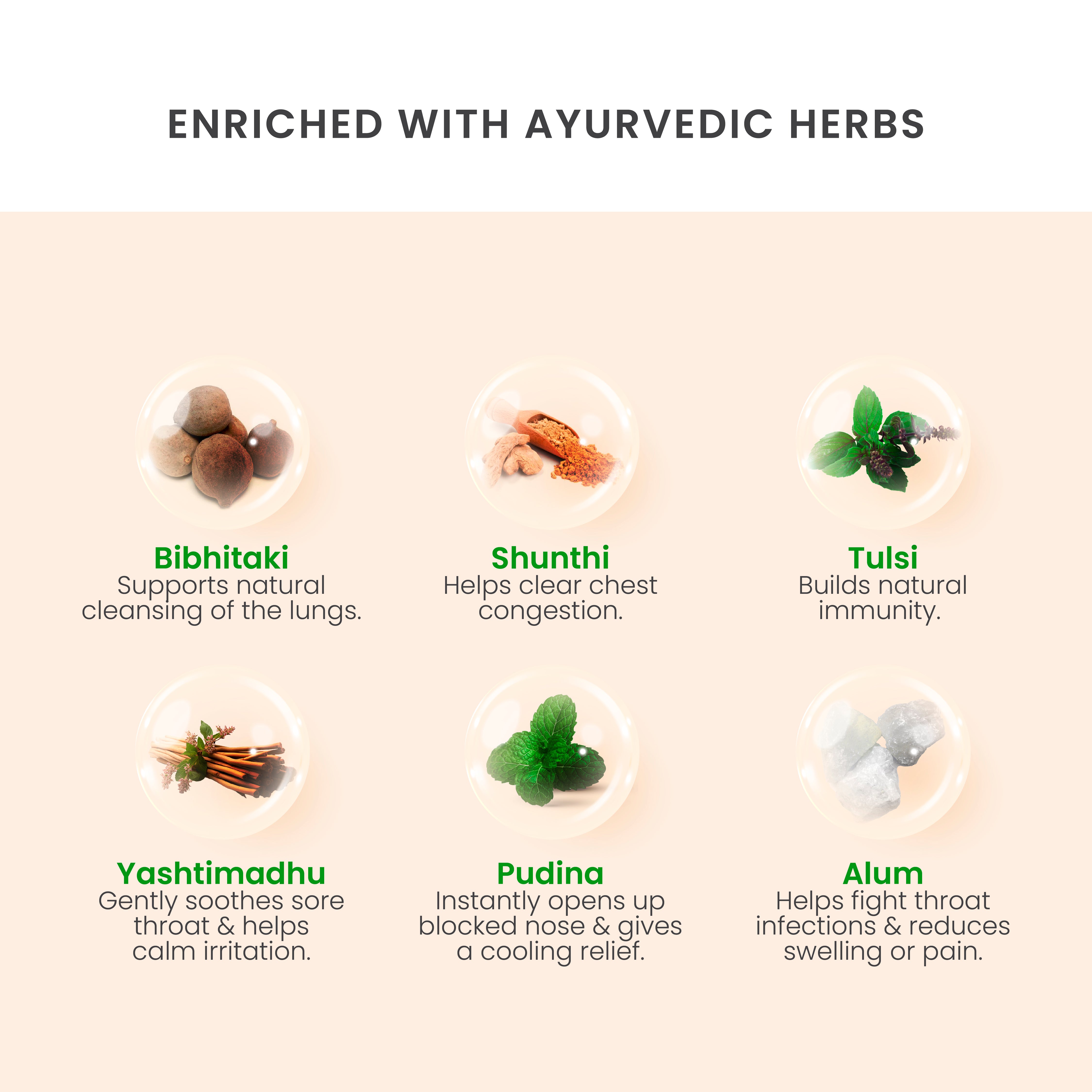 2. 100% Ayurvedic : Enriched with powerful Ayurvedic herbs like Yashtimadhu, Tulsi, Bibhitaki, Shunthi, Alum, and Pudina it works on multiple levels to ease throat irritation.